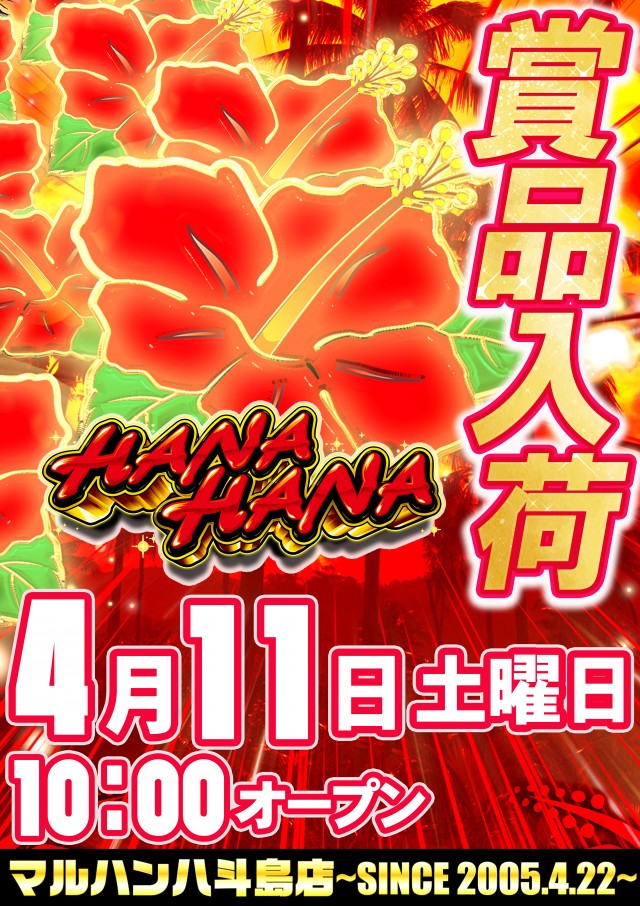 4月11日(土)『賞品入荷』『ハナハナ賞品入荷』10時開店‼