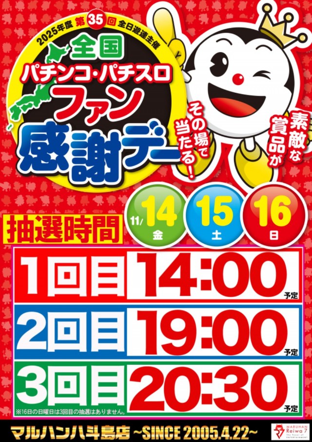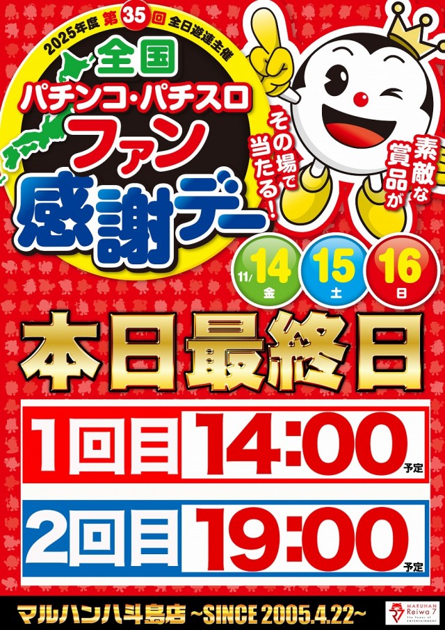 本日11月16日(日) 『全国ファン感謝デー最終日』