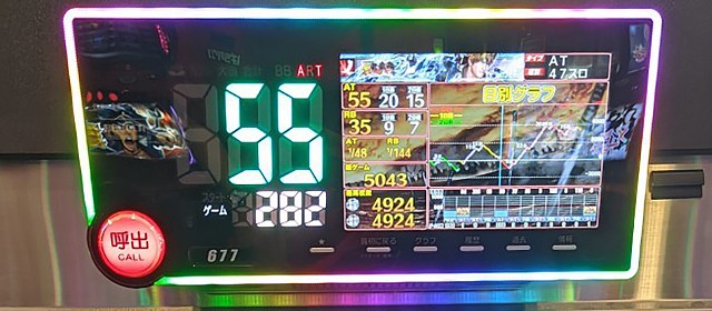 気になる結果は…残念、4桁ながらトータルマイナスに終わってしまった。とは言え、上記に挙げた出玉表示&ドル箱写真の通り、必ずや見どころがあったはず。以下からは[1000円/47枚]スロ全241台の出玉データ詳細を基に、当日の優秀台をお伝えしていこう。