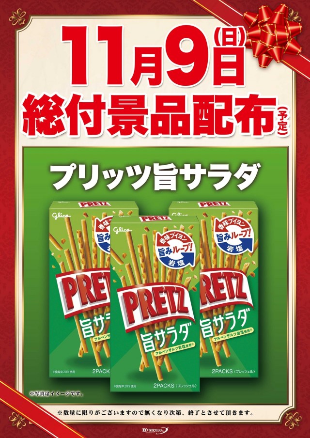 本日総付景品配布!!【感謝】11月9日 午前10時開店!!