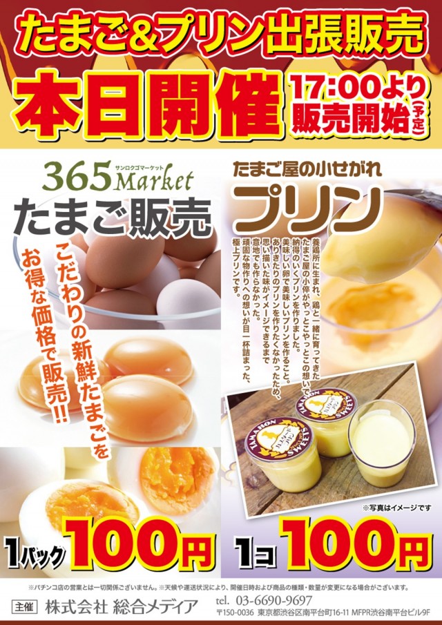 本日【たまご&プリン出張販売】ご来店お待ちしております!!