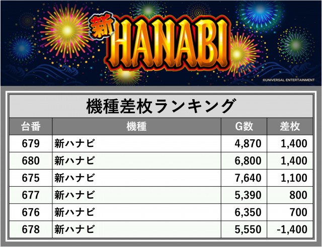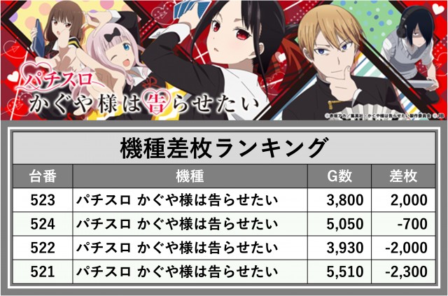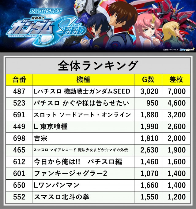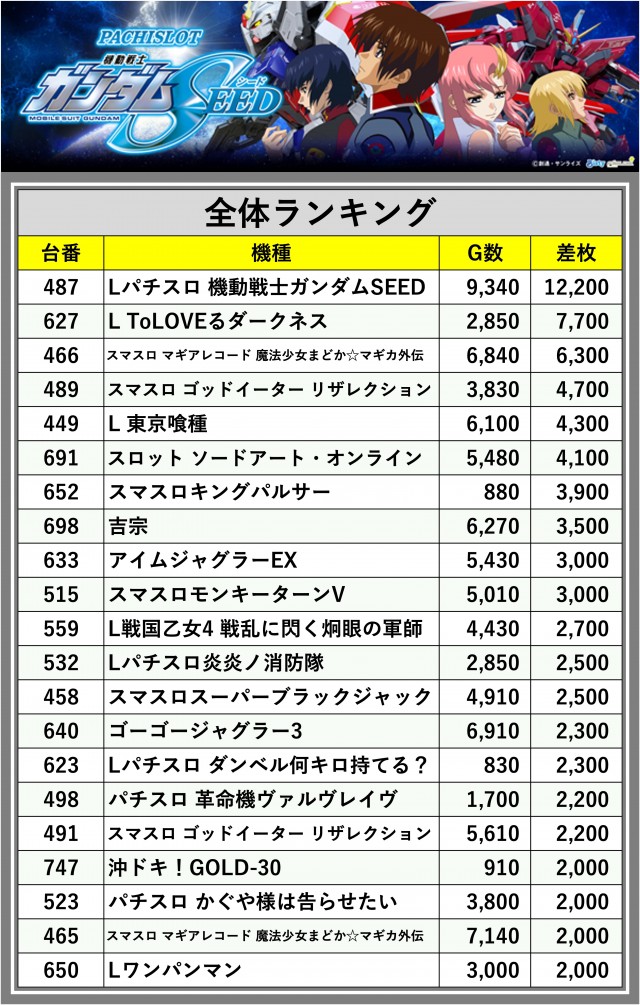 ※差枚数順に掲載しています