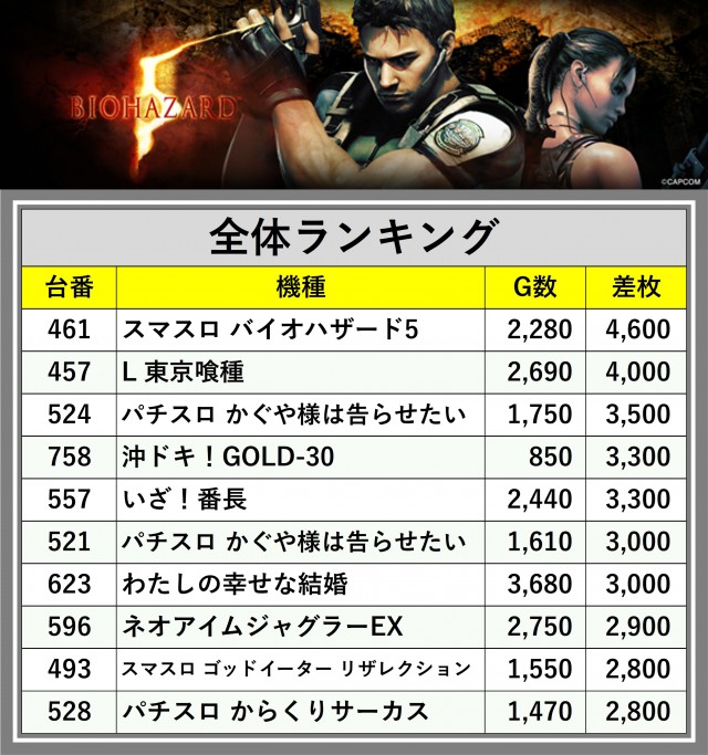 厳選された取材対象機種をはじめ、その他スロット全体から好記録が飛び出した!プレイヤーが楽しんだ1日を下記データにて振り返ってみて欲しい。