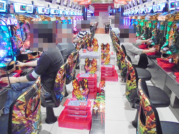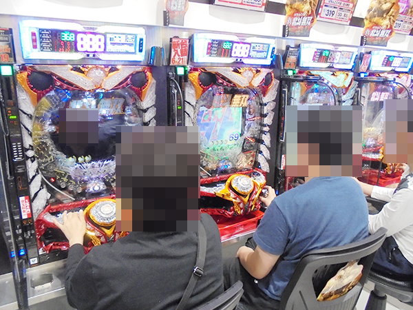 「ぱちんこCR真・北斗無双」や「CRそれゆけ野生の王国」なども人気。空き台もほぼないといった状態で、プレイヤーたちの視線も集めていた。