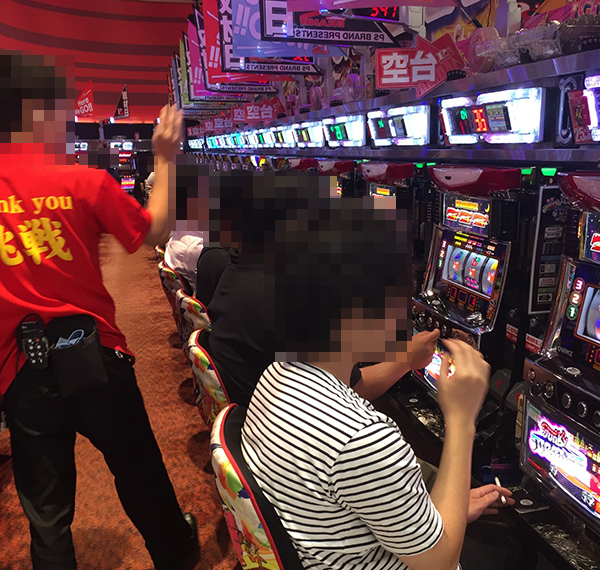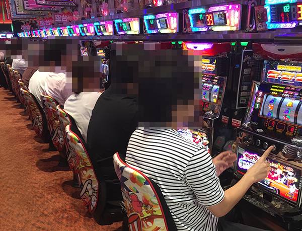 遊技をしている多くのプレイヤーが満面の笑みを浮かべており、機種の魅力をしっかりと堪能できている様子。