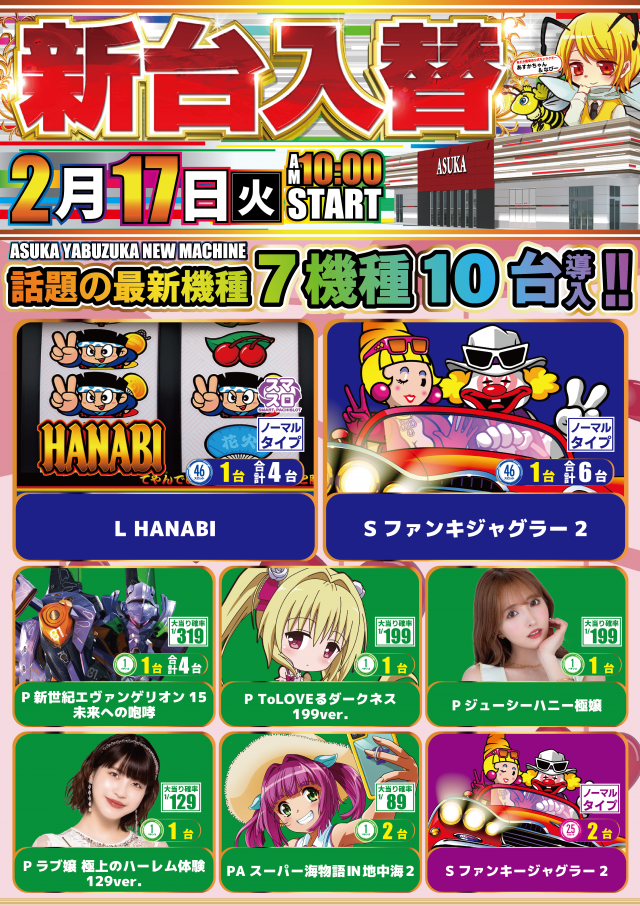 2/17(火)新台入替!7機種10台導入!