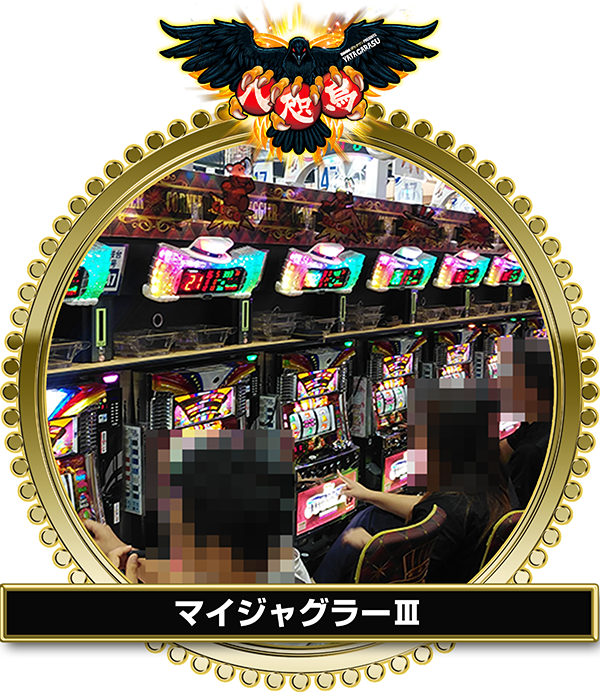 「マイジャグラーⅢ」、「バジリスク~甲賀忍法帖~絆」、「ゴーゴージャグラー」の3機種がどれも主役級の存在感を発揮していた。