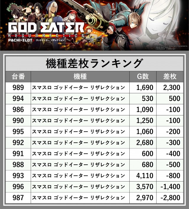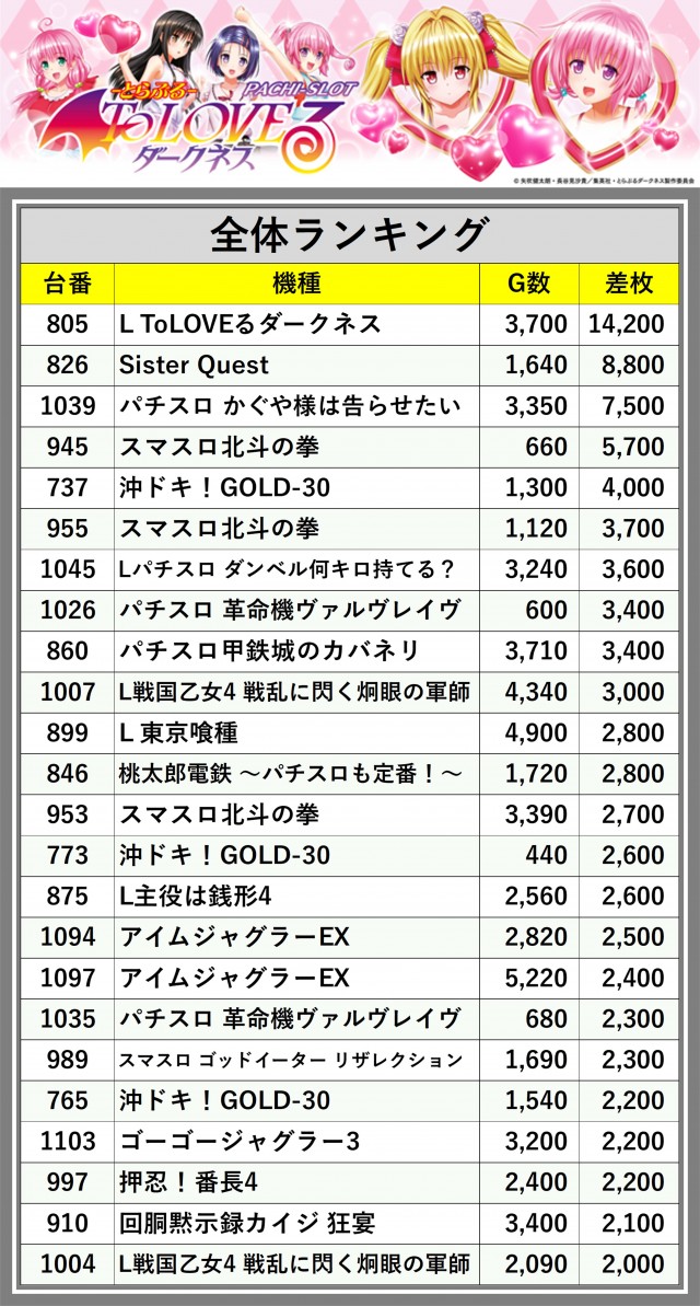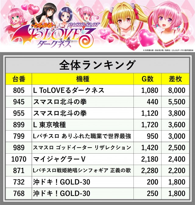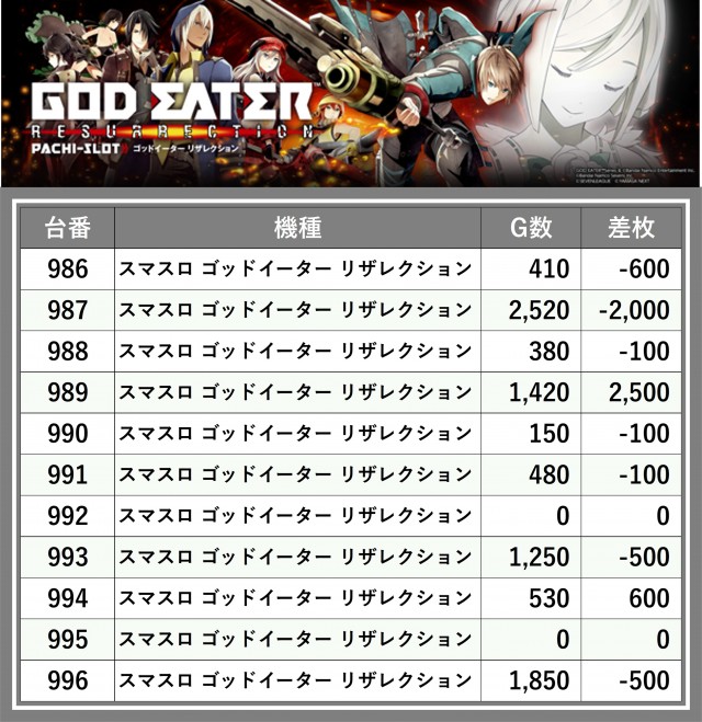 厳選された取材対象機種をはじめ、その他スロット全体から好記録が飛び出した!プレイヤーが楽しんだ1日を下記データにて振り返ってみて欲しい。