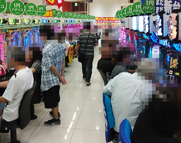 午後の4円パチンコは各シマが活況であり、いたるところで素敵なシーンがみられた。
