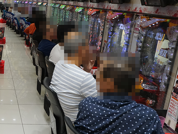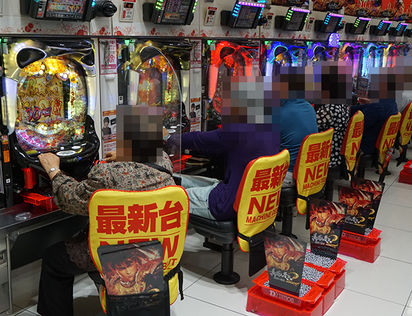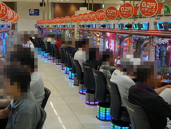 パチンコの低貸し玉コーナーはイスが特徴的な見た目。遊技とはまた違った楽しさを感じられる設備だと思った。
