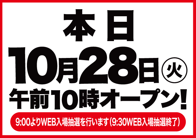 オンライン抽選 9:00 WEB抽選受付 9:30 WEB抽選締切 9:45 抽選結果発表 |