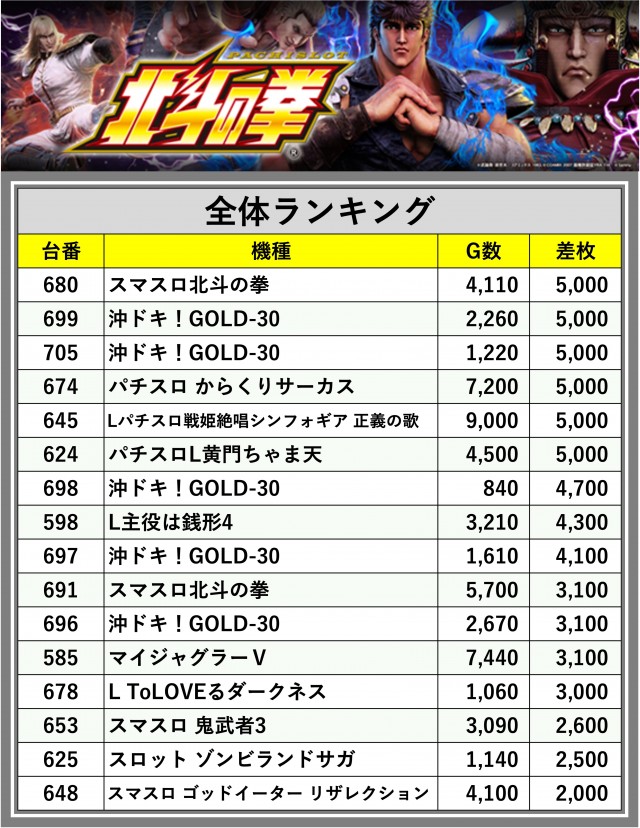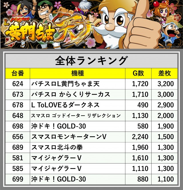 厳選された取材対象機種をはじめ、その他スロット全体から好記録が飛び出した!プレイヤーが楽しんだ1日を下記データにて振り返ってみて欲しい。