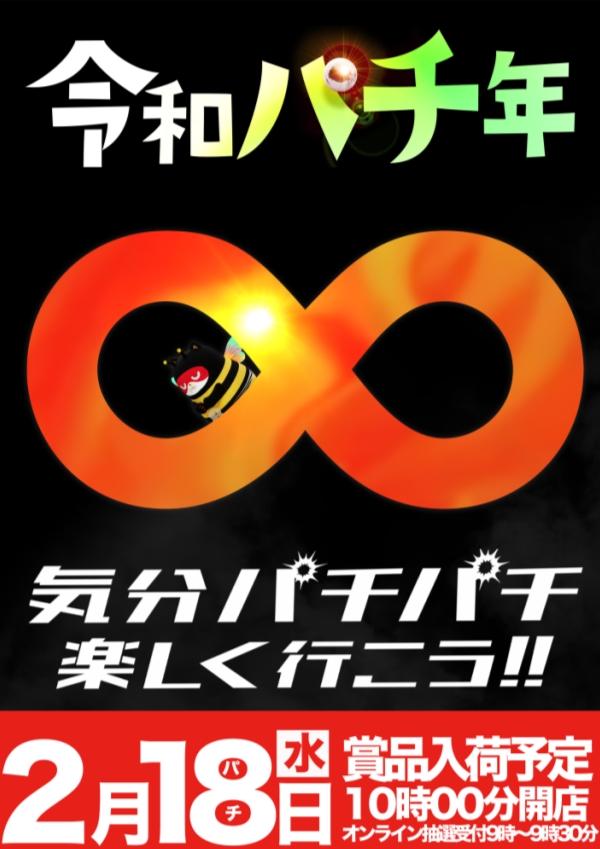 令和パチ年2月18日(水)賞品入荷!あさ10時オープン!