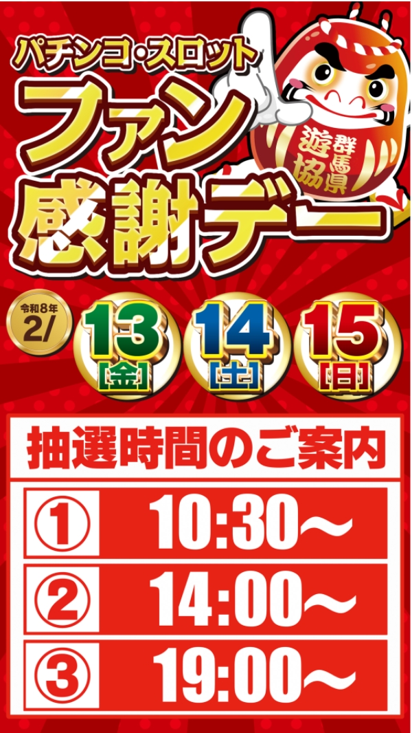 2月15日(日)あさ10時オープン!ファン感謝デー最終日