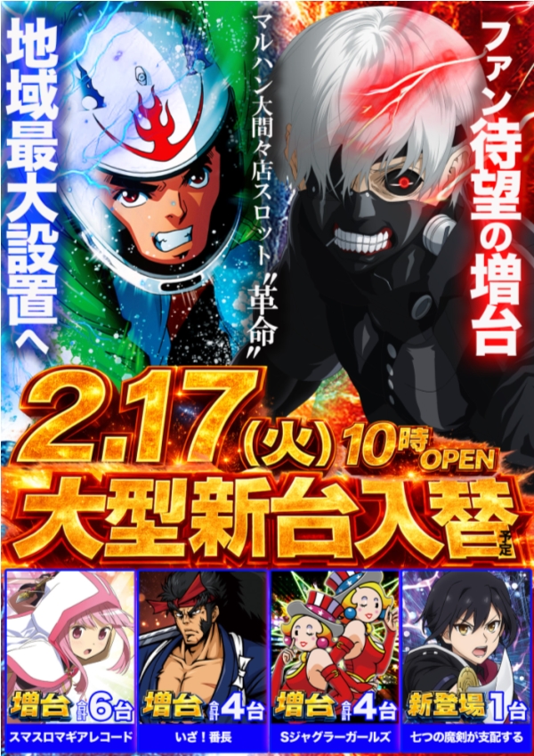 2月17日(火)イイナ!マルハン!新台入替&取材予定!