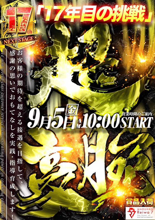 17年目の"挑戦" 9月3日(水)賞品入荷!!