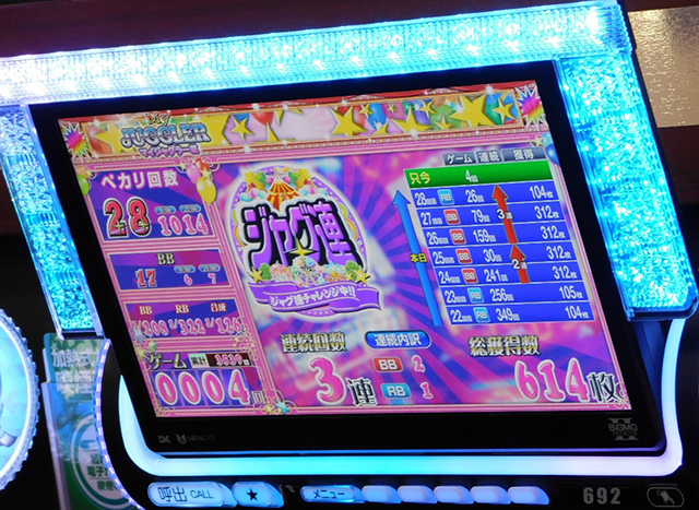 『ゴーゴージャグラー2』の設置台数は6台で、滞在時は4台が稼働していた。