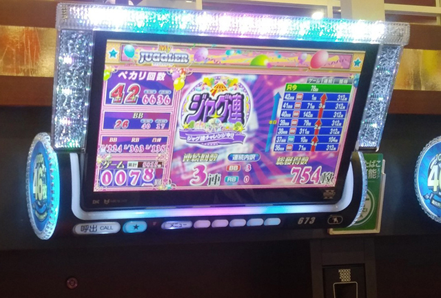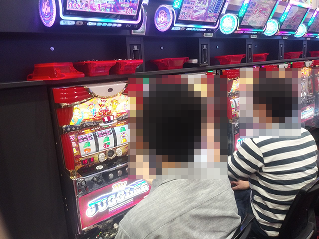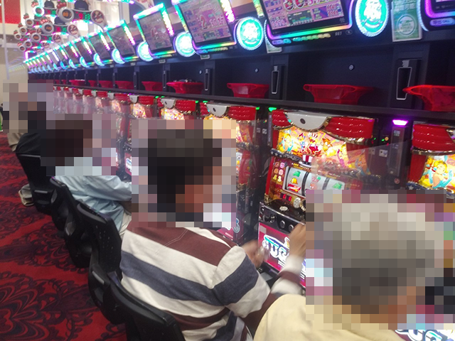 前日の輝きを維持している宝石を求めてパチスロコーナーをまわっていると、あちこちに満面の笑みを浮かべて遊技をおこなっている姿があった。
