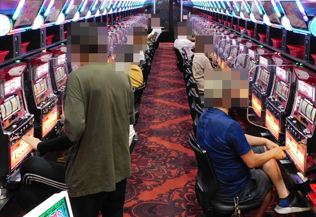 ジャグラーシリーズ以外にも、「ノーゲーム・ノーライフ THE SLOT」や「鬼浜爆走紅蓮隊 狂闘旅情編」などで遊技を満喫しているようなプレイヤーを目撃。華やかなムードに包まれながら、笑顔で過ごしていたことを記憶している。