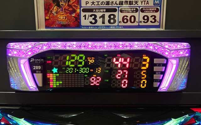 初当りの大当りラウンド中に発生する超源チャレンジ成功がRUSH獲得のメインルートとなっており、3図柄と7図柄揃いはRUSH突入濃厚だ。