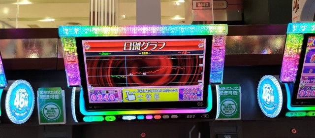今回の[1000円/46枚] スロ計266台ではトータル差枚数+7,702枚と、前回トータルマイナスの成績を見事跳ね返した。今回を含めて2022年全5回のトータルプラスは2回とまだマイナスが先行しているため、次回取材時は是非タイに、それ以降も全て勝利を狙っていきたい!