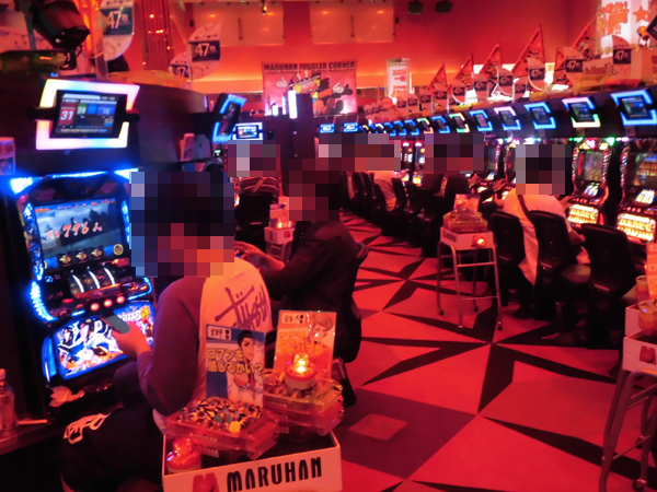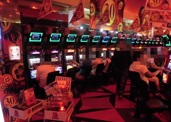 笑顔、そして活気と話題性を持つ光景がパチスロコーナーに広がっていた!