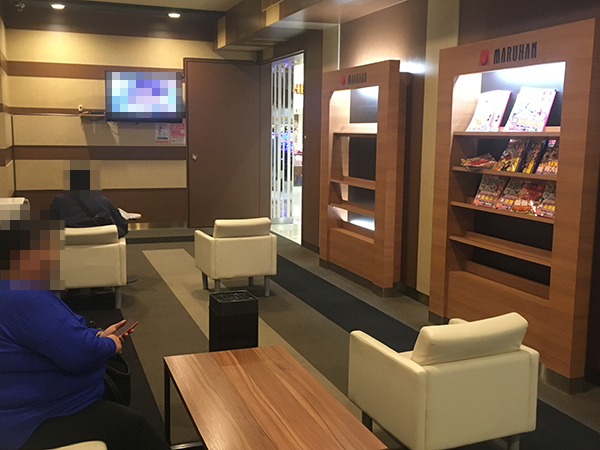 ひとり掛けのソファーが置かれたレストスペースも完備。ゆったりとくつろいでいる姿もみられるなど、遊技中のみならず、休憩中も快適に過ごせる環境が整っている。