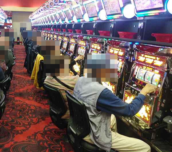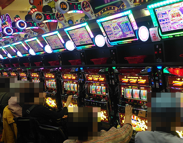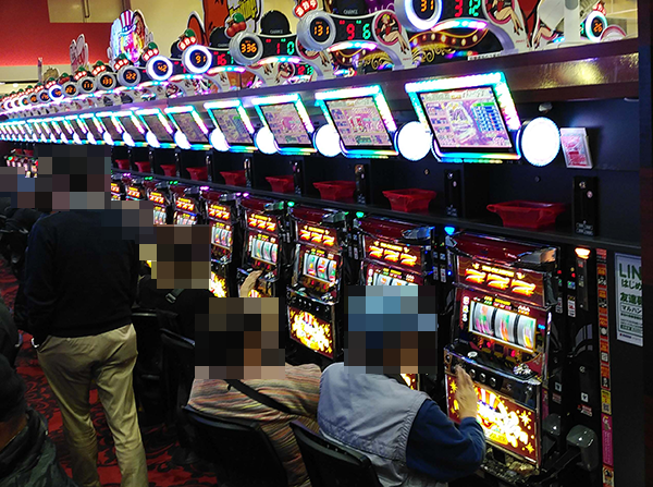 中央通路を通って、盛り上がっているパチンココーナーを眺めながらパチスロコーナーに向かった。
