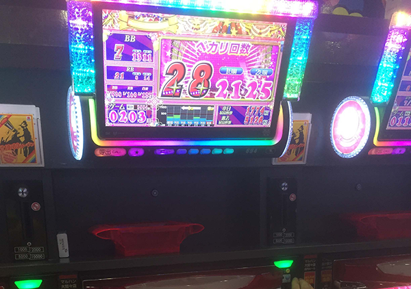 遊技台の上には大きくてみやすいデータカウンターがあり、確認時はボーナス合算確率が1/130を上回るものを目にしている。