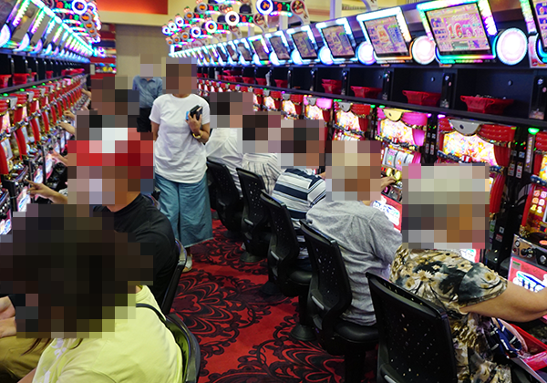 活気が感じられるパチスロコーナーへ向かうと、多くのプレイヤーが遊技をおこなう楽しげな光景が目に飛び込んできた!!
