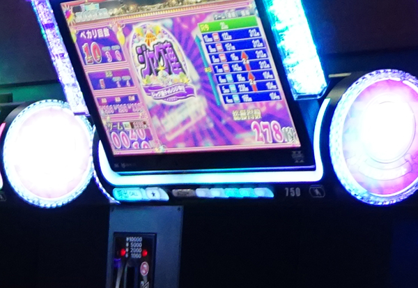 楽しげに遊技をおこなっている姿のほかに、ボーナス合算確率が1/117と設定6の数値を上回る台も目にしている。