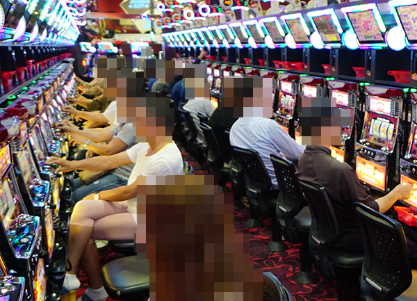 あちこちに遊技を楽しむ姿があり、ホールにある8機種すべてが大にぎわい!