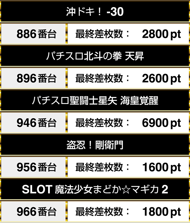 『沖ドキ!-30』の886番台と『パチスロ北斗の拳 天昇』の896番台はどちらも2000ptを上回る!!