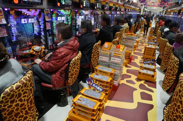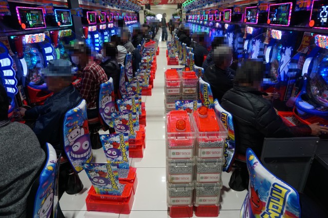通路内でひしめき合うドル箱の多さに、取材班は脱帽した。