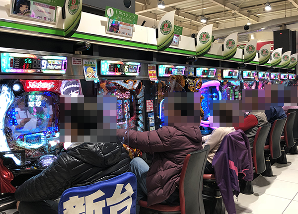 「ミリオンゴッド-神々の凱旋-」や「SLOT魔法少女まどか☆マギカ2」など、たくさんの機種に楽しそうな光景が広がっていた。