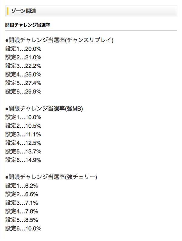 レア役からの開眼チャレンジ当選率は高設定ほど高い。