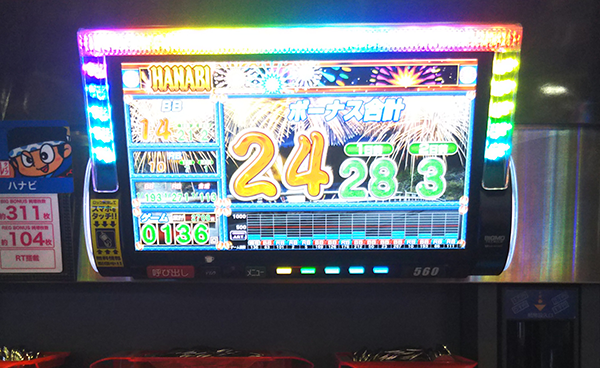 ホール内の様子をうかがうと、多数の機種が活気づいていた。