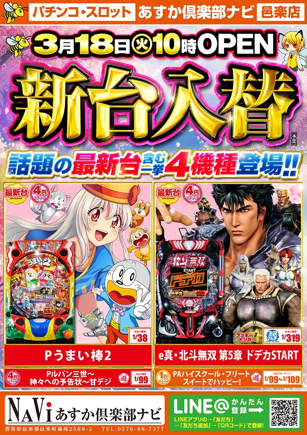 【3月18日(火)新台入替】