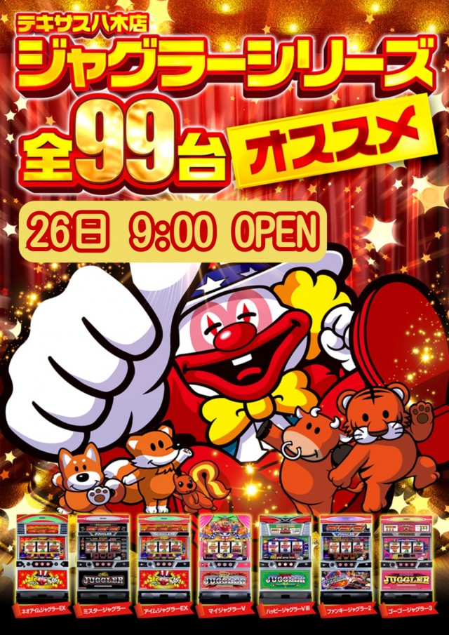 おはようございます(^^)/テキサス八木店です。2月25日【21.73円スロット342台】【5.5円スロット64台】【総設置台数 406台】全館9時オープン!!