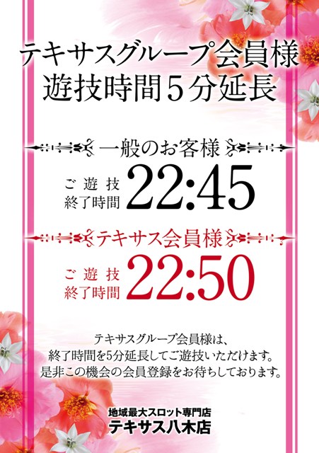 9:00 ~ 22:45 会員様のみ5分延長有り |