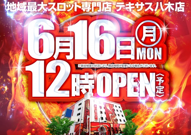 こんばんは(^^)/テキサス八木店です。明日6月17日(火)新台開店予定全館9時オープン!!