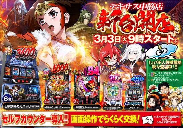 年中無休営業※新台入替前日は12時開店予定となっております。 |