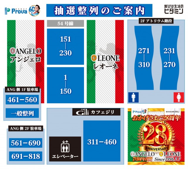 オンライン抽選となっております。事前にアプリダウンロード後、予約をお願い致します。1⃣8:30 抽選予約締切 2⃣8:40 認証締切 3⃣8:40~8:45 再抽選 4⃣8:45~8:50 整列 5⃣9:00 入場開始 |