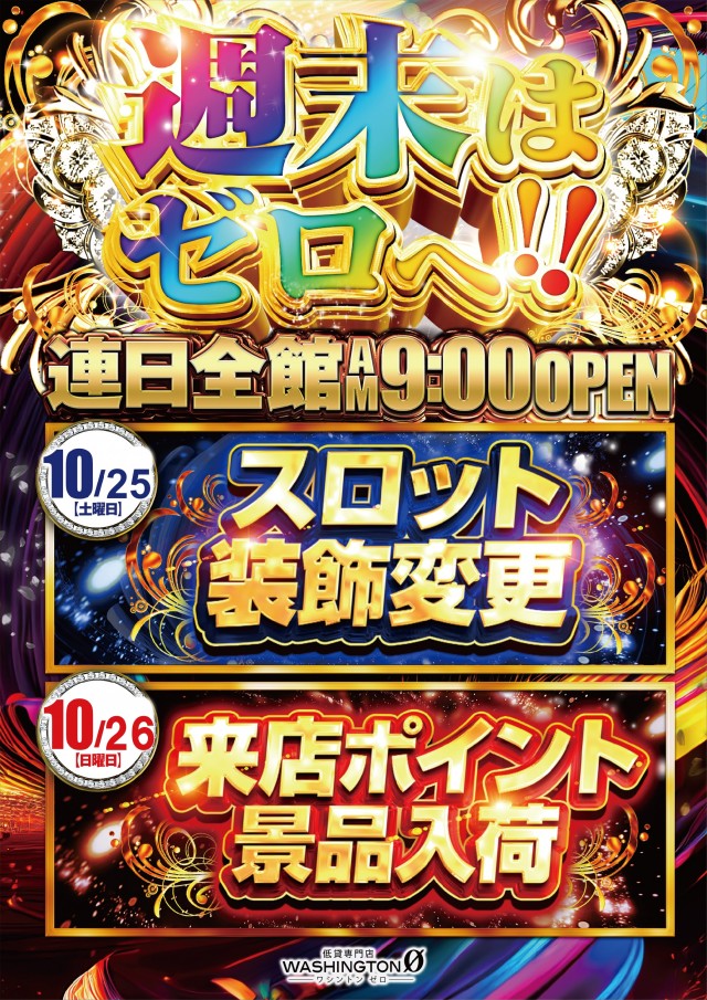 週末はゼロへ 明日25日(土)スロット装飾変更‼️🎆