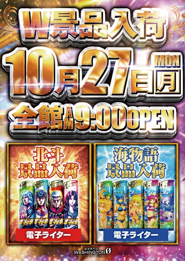 明日27日(月)W景品入荷【北斗・海】景品入荷!!
