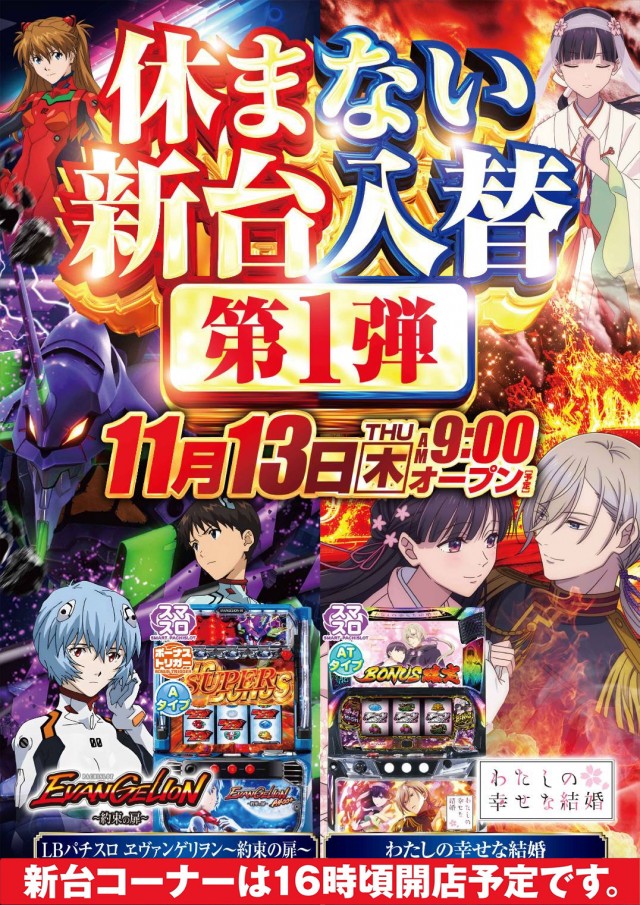 明日11月8日【土】スロット装飾変更&リフレッシュOP2日目
