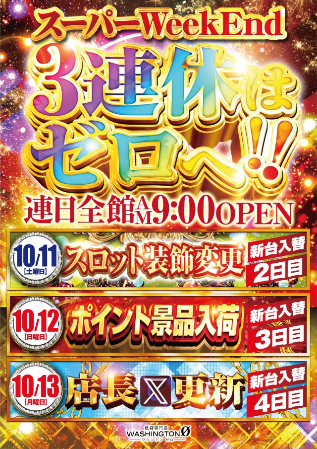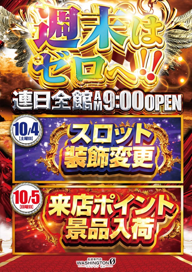 週末はゼロへ 明日4日【土】スロット装飾変更