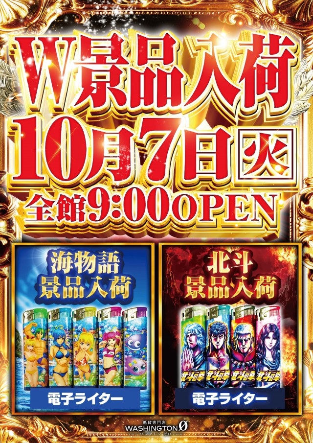 明日7日【火】W景品入荷!!《北斗・海物語電子ライター》