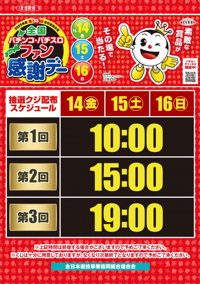 明日11月14日(金)全国パチンコパチスロファン感謝デー開催