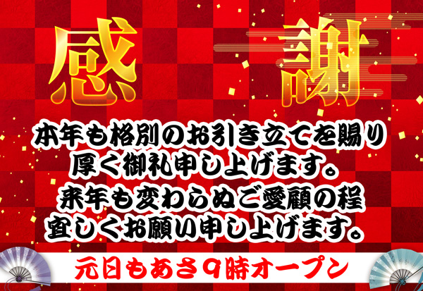 本年も格別のお引き立てを賜り厚く御礼申し上げます。